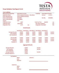 The Pump Validation Software Suite has been designed to accept raw data generated by the TESTA Analytical flowmeter PC-App and perform all necessary flow calculations automatically. Using this powerful software tool – all data and parameters are automatically validated for fitness of use for validation and a summary report generated which can be stored or printed for hard copy documentation.