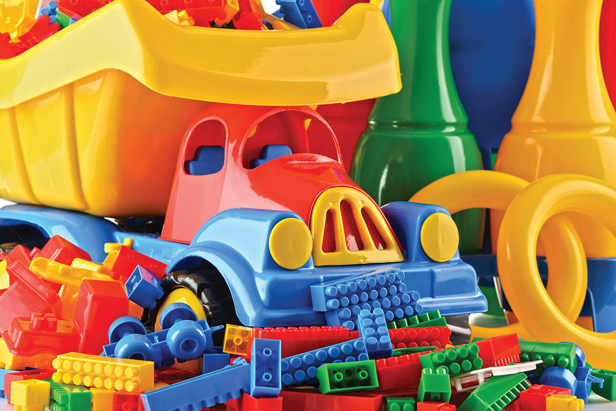 Composition with colorful plastic children toys