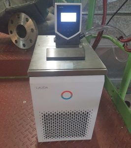Since the pump is located in a production line, the connected thermostat must run reliably day and night for years to prevent downtime of the entire line. The LAUDA ECO is installed once by plug-and-play, the temperature is set and then it can be used in continuous operation. In the case shown, a working temperature of 22 °C must be maintained, for which water is a suitable temperature control medium. Therefore, pump connection pieces made of plastic are the accessories of choice. The thermostat chosen is the ECO RE 1050 S, which perfectly covers the required temperature, durability, and performance.