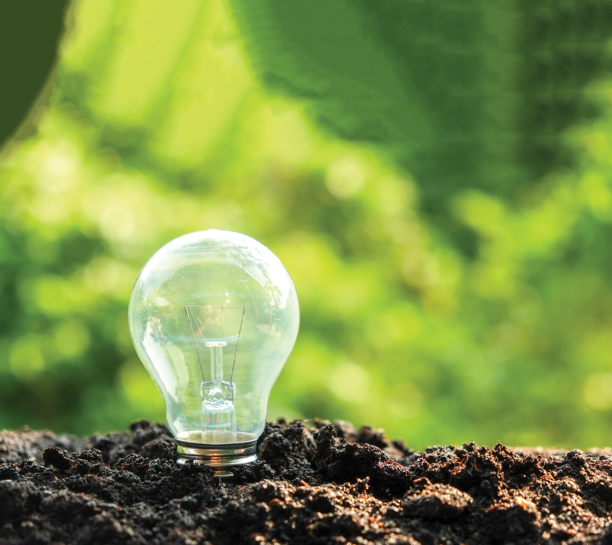 idea and energy concept Light bulb in soil