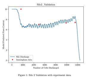 Figure 2: 3D CA model validation against 30,000 tonne industrial silos