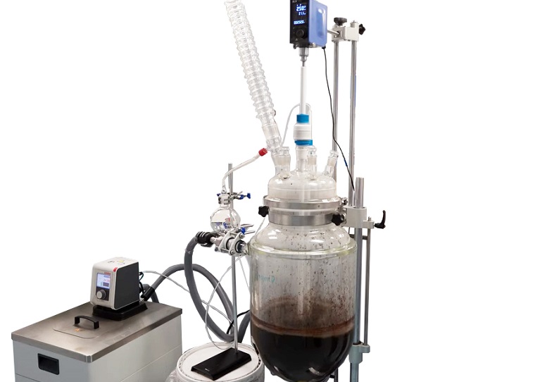 Dawn Thompson, senior process chemist at Revive Eco commented “Until relatively recently we were only able to make the coffee oil on a small scale in the lab. Growing awareness of the need for sustainability, particularly in the cosmetics and food and drink industry, meant the demand for our coffee oil and the coffee oil products was increasing rapidly. We were in a position where, if we were not able to scale-up our process, we would have long lead times for our products and eventually would not be able to meet client demand. Asynt provided the ideal solution to our problem. Asynt’s Dr Kerry Elgie worked with us closely to understand our needs and provided us with a bespoke 20-litre jacketed reactor with the ATOM stand, overhead agitator, heater chiller unit and a large-scale condenser which is vital for us when we are isolating our coffee oil. This CondenSyn MAXI waterless condenser fits beautifully into our ethos at Revive where we strive to find new possibilities in old problems, and because it’s waterless we are quite literally saving thousands of litres of water per run. It’s also a lot a lot safer and a lot easier to run in the laboratory than a water condenser as we’ve eliminated the risk of water tubing leakages or accidents. All-in-all, the ReactoMate reactor and the CondenSyn truly allow us to make our green process sustainable”.