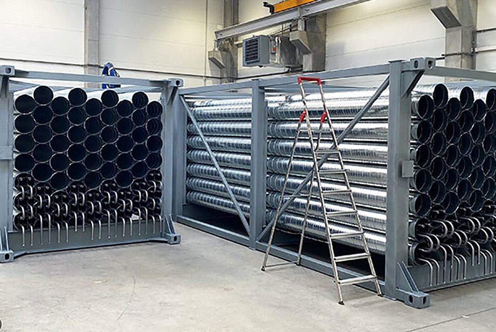 ENERGYNEST’s technology uses a steel and concrete mix called Heatcrete© – a high performance concrete, which is composed of 75% quartz aggregates and 25% additives, which can be manufactured at low cost and has excellent thermal properties. A steel carrier structure encloses HEATCRETE®-embedded carbon steel pipes, through which a heat transfer fluid is charging and discharging the storage system at a pressure of up to 160 bar. A single module, fitting into a standard 40-foot container, provides an energy capacity of up to two megawatt hours thermal.